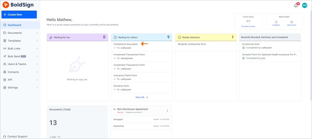 BoldSign offers features that streamline the process of obtaining signatures on compliance documents.
