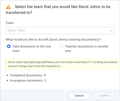 - Transfer Document Ownership: Project leads can easily transfer document ownership to another team member.